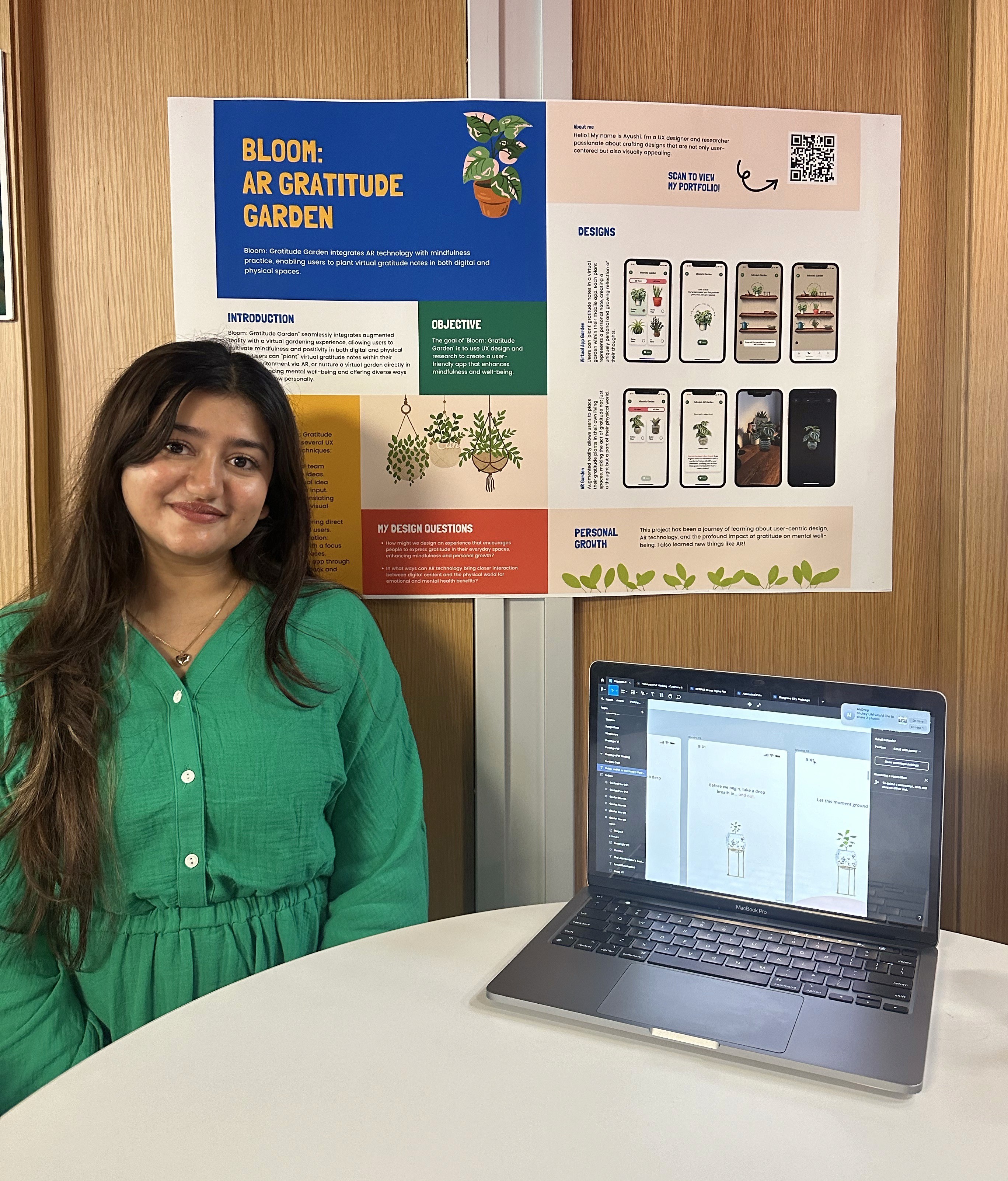 At the University of Miami I did not just study UX. I studied game design, front-end development, and interactive media, everything that sits at the edge of technology and art. I graduated with Bloom, an AR gratitude garden that won Best UI/UX at the annual showcase. Now based in Seattle, I work with early-stage startups building AI products from the ground up. Still the same itch to create. Just a bigger canvas.
