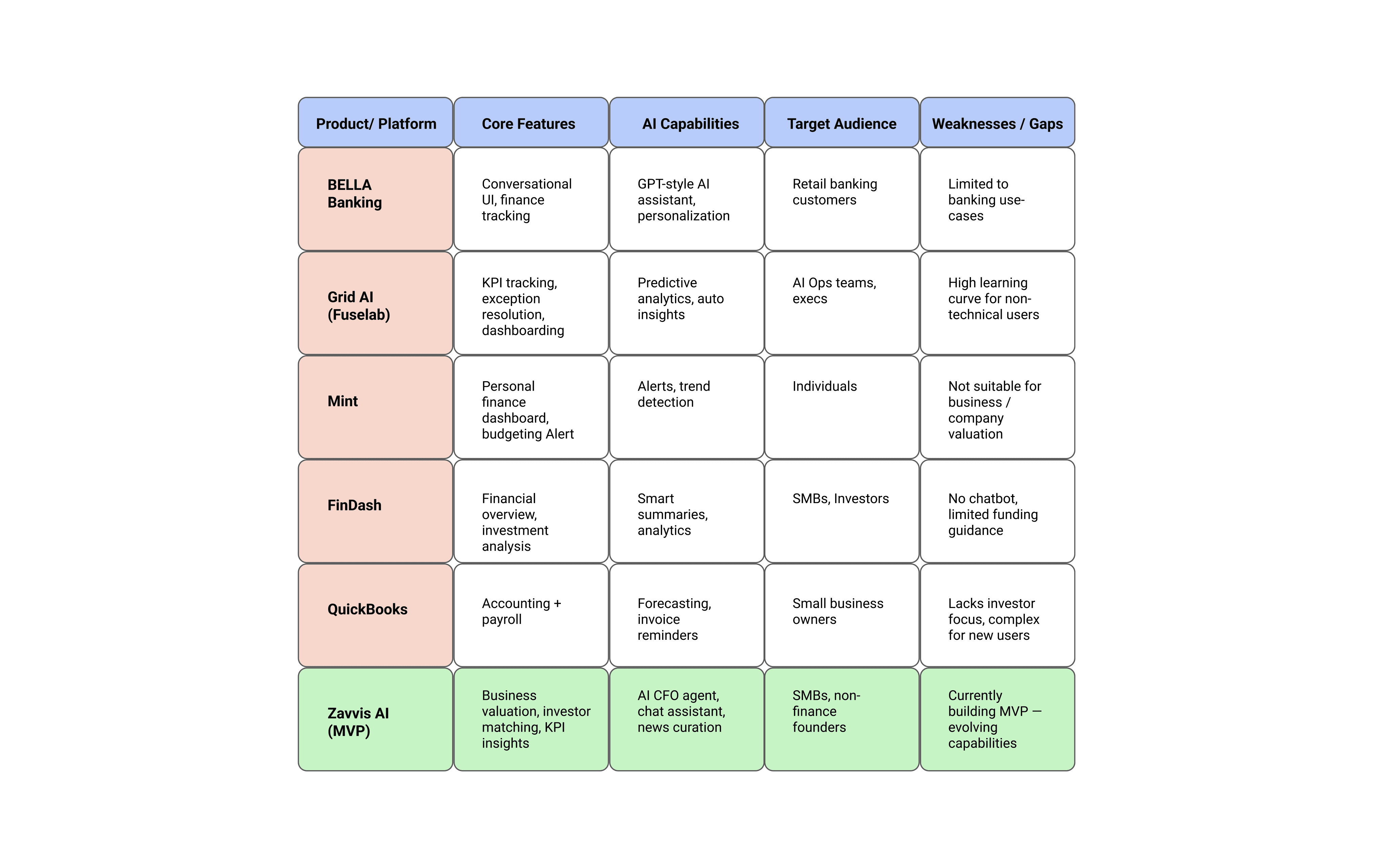 I analyzed the landscape (Mint, QuickBooks, FinDash) and realized most tools were either too personal (budgeting apps) or too complex (accounting software). None focused on the Founder-to-Investor pipeline.