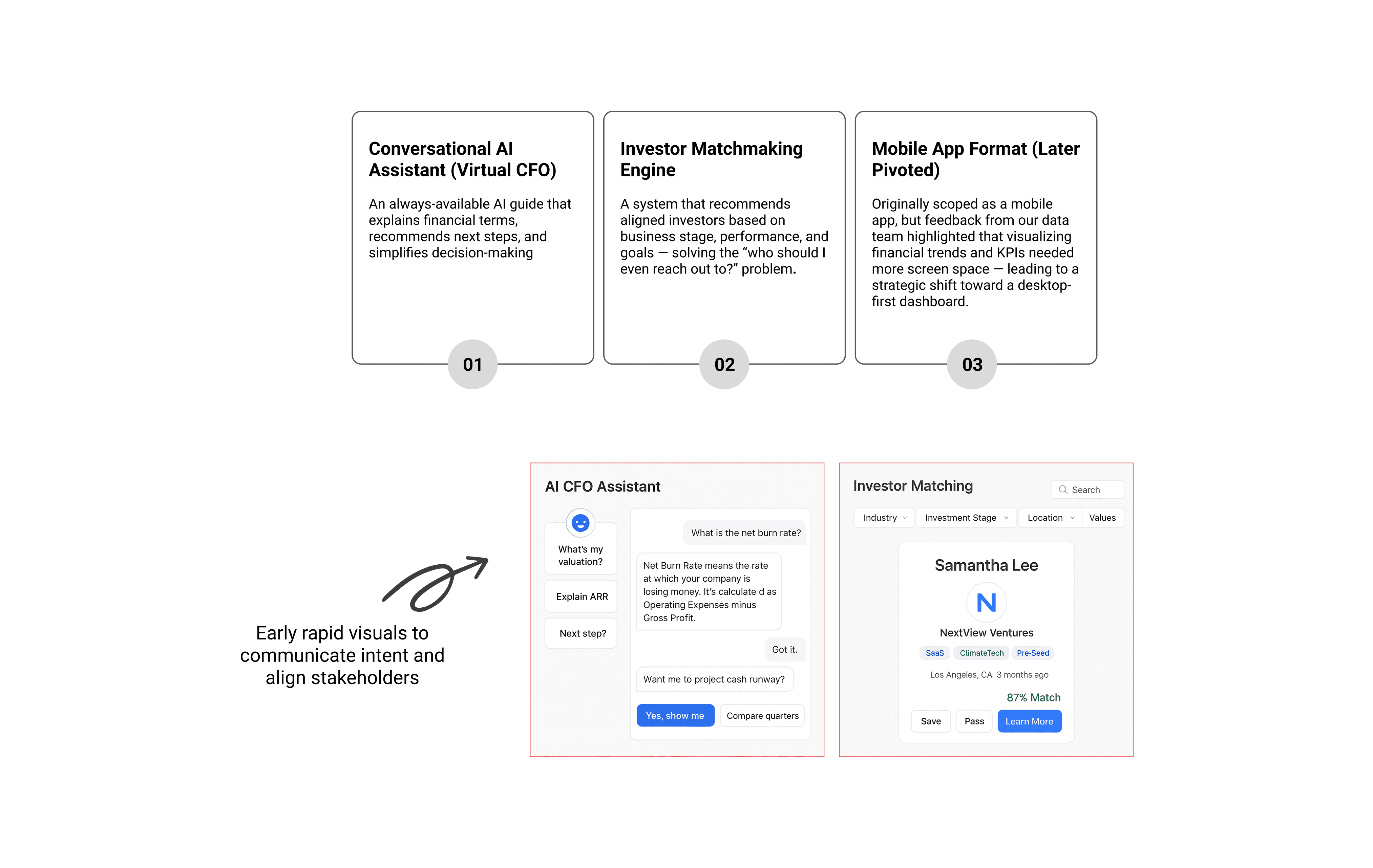 I structured the Information Architecture (IA) to follow a founder's natural internal monologue:
